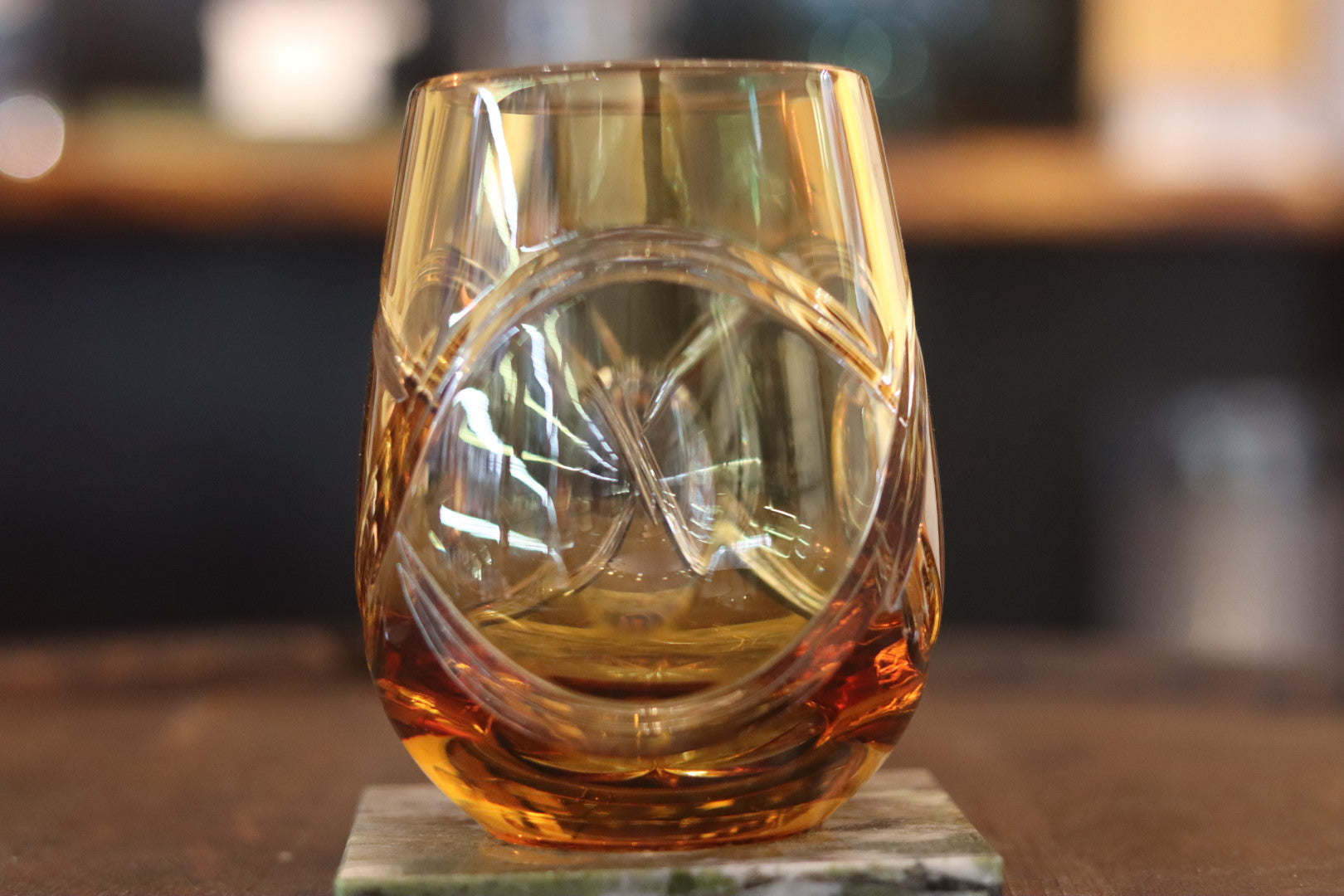 This large blue roly poly tumbler is a sophisticated, eye-catching piece that will add a touch of luxury to your dining table. Expertly blown in stunning blue and cut in our classic Celtic Flame design, it holds an impressive 12-14oz of your favorite drink. Elevate your drink experience with this elegantly exclusive tumbler.